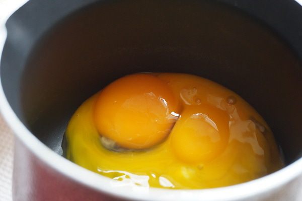 6. Займусь подготовкой смеси для суфле. Собрала в кастрюльку два желтка, молоко, сахар одну ст. ложку, муку, крахмал, можно так же добавить палочку ванили :). Все хорошо смешала. Суфле с белым шоколадом