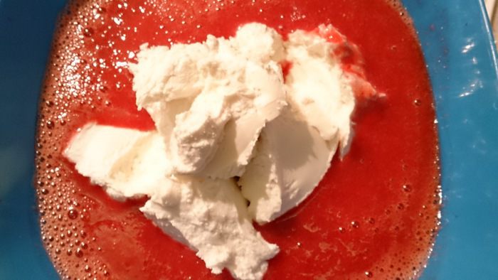 8. Пробейте блендером мягкий творог и сметану. Тарт с клубничным муссом и желе