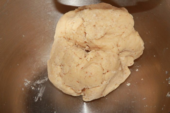 2. На самой малой скорости с помощью насадки лопатка все это перемешиваем до образования мелкой крошки.
