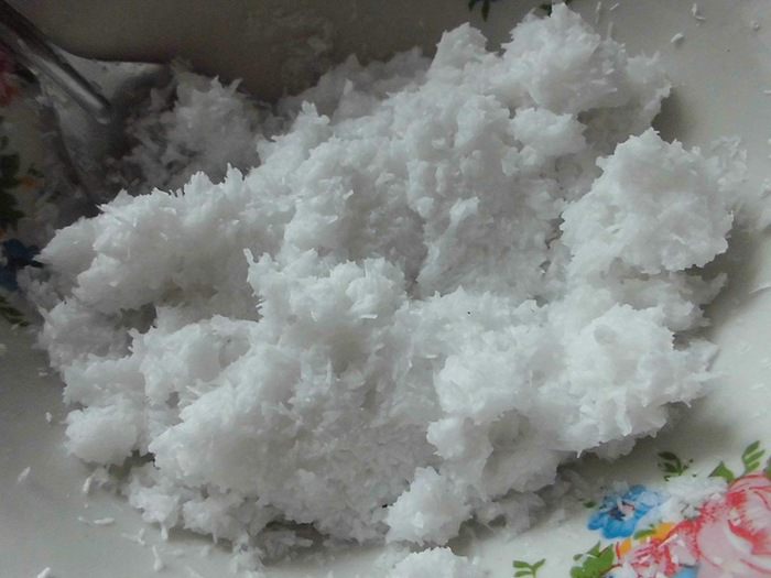 5. С кокосовой стружки отжать лишнюю воду и добавить 1 ч. л. мёда. Выложить стружку на слой банана и клюквы. Торт " Сказочная клюква"