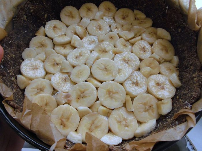 6. Сверху опять сделать слой бананов, но уже без клюквы. Тут я уже закрыла ими всю поверхность, чтобы не было дырочек. Торт " Сказочная клюква"