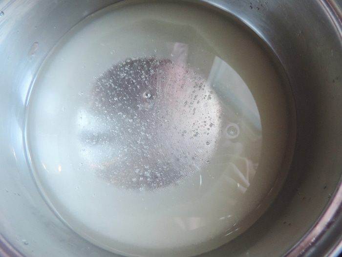 24. Приступим к финальному этапу - глазурь. Заранее замачиваем желатин (в 4 ст.л. воды) и даем ему набухнуть, затем его растопим.