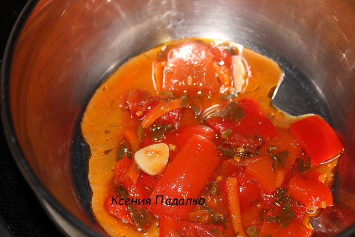 3. В ковш выкладываем 3 ст.л. лечо и соус табаско. Утиная грудка, тушеная в лечо