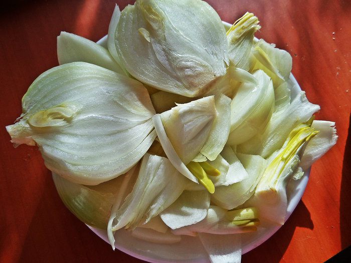 3. Лук очистить и нарезать крупно. Зерновые луковые чипсы
