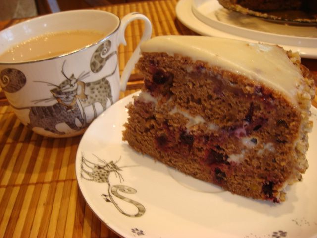 Шарлотка с ревенем, вяленой вишней и пряностями
