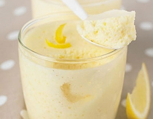 Положите листы желатина в холодную воду. Натрите на терке цедру половины лимона. Отделите белок от желтка. В миске смешайте при помощи венчика желток, 2 ст. л. сахзама, цедру лимона и 50 г творога, до получения однородной массы. Вылейте смесь в небольшую кастрюлю и разогрейте на маленьком огне в течение 2-х минут. Затем снимите с огня, добавьте желатин и лимонных ароматизатор. Смешайте до полного растворения желатина. Взбейте венчиком оставшийся творог и добавьте его к лимонному крему. Взбейте белок в густую пену со щепоткой соли, затем добавьте 2 чайные ложки сахзама. Продолжайте взбивать еще несколько минут. Аккуратно соедините обе смеси. Поставьте в холодильник на 2 часа.